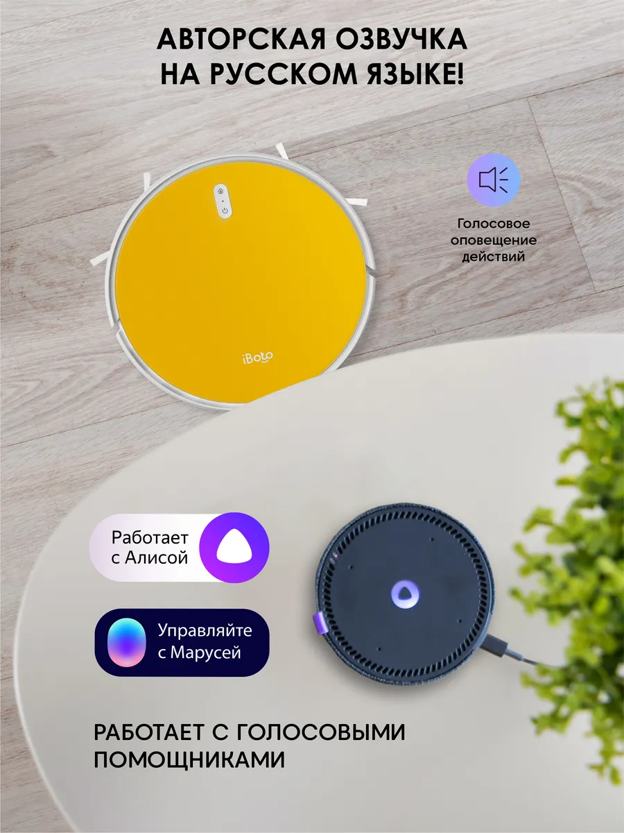 Робот пылесос с алисой iBoto X420GW имеет собственный голос на русском языке, озвучивает голосом самые важные события по ходу выполнения ваших поручений. Отлично понимает команды голосовых ассистентов, работает с Алисой, Марусей и легко интегрируется в экосистему «Умный дом» от Tuya Smart!