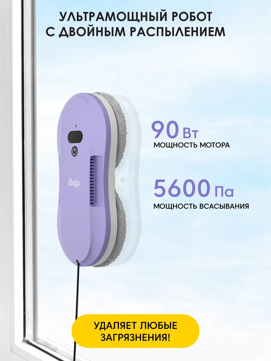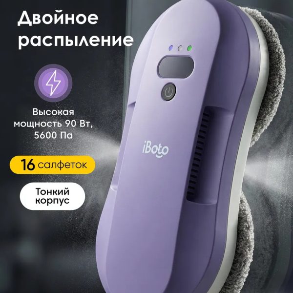 Робот мойщик окон с распылением с двух сторон iBoto Win 395 от специализированного на робототехнике бренда iBoto – это идеальный робот мойщик, чтобы экономить вам время и деньги на мытье окон, безопасно мыть любую вертикальную и горизонтальную поверхность в квартире или доме: окна, зеркала и многое другое, не оставляя разводов, не царапая и не повреждая поверхность! Робот мойщик будет прекрасным помощником в решении проблемы безопасного мытья окон от 30 см на высоких этажах!