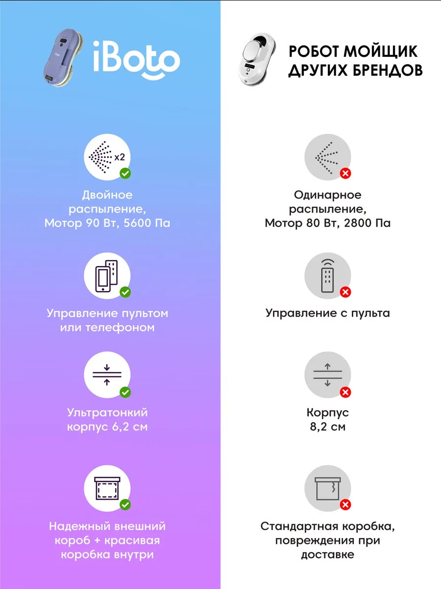 Превзашел все ожидания. Первый опыт мойки был с Hobot, который в 2 раза дороже. Но iBoto ничуть ему не уступает в работе. Очень довольна покупкой. Спасибо!