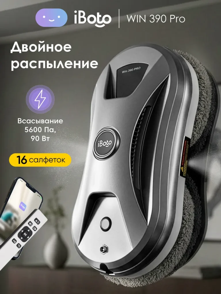 | Комплектация | 1 адаптер; 1 страховочный трос; пульт ДУ — 1 шт; Робот мойщик окон — 1 шт; Салфетки 6 шт |