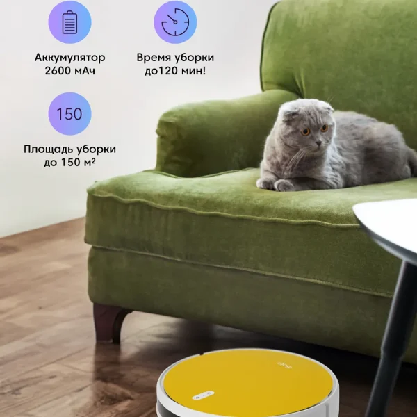 Пылесос отличный трудяжка. У меня студия 31 КВ.м. убирает за 35 минут на отлично. Проверяла за ним тряпкой всё чисто. Пользуюсь два раза в неделю один раз обычной уборкой и один раз влажной. Забирается куда только может под диван, под кухню, брала специально невысокий с этой целью. Зарядку держит отлично 👍 хватает на 3-4 уборки( только надо выключить на кнопочку после использования, чтобы заряд просто не расходовался). Прост в очистке и подключении. Вообщем отличный помощник за такие 💰. Я очень довольна к покупке рекомендую не пожалеете. Спасибо большое производителю и Валдберис.