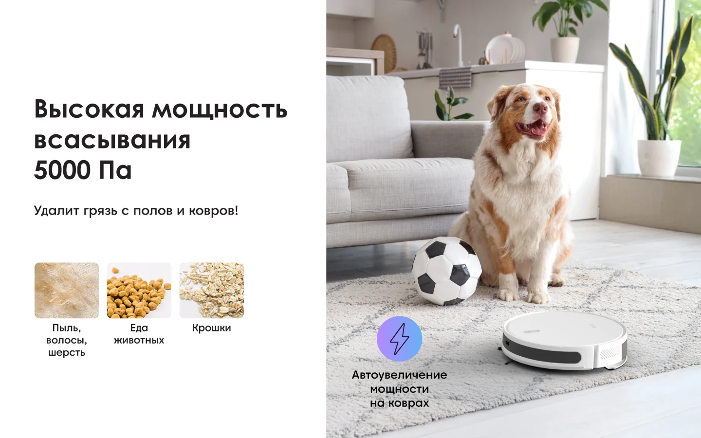 Этот пылесос легко справляется с уборкой на любых поверхностях, даже на коврах. Хорошо собирает шерсть животных, что особенно важно для нашей семьи. Управление интуитивно понятное, а благодаря мобильному приложению можно включать уборку, даже когда нас нет дома. Очень довольны покупкой!