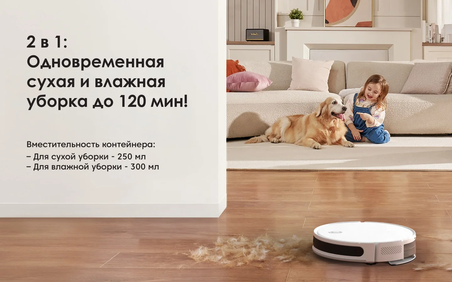 Отличный робот-пылесос за свою цену! Хорошо справляется с уборкой как на плитке и ламинате, так и на коврах. Удобное управление через приложение, можно настроить уборку по расписанию. Контейнер для пыли вместительный, а фильтр задерживает даже мелкую пыль. Очень понравилась функция влажной уборки — полы действительно становятся чище. Теперь уборка дома занимает минимум времени!