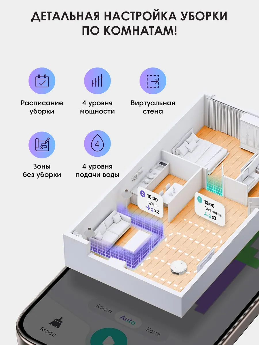 | Режимы уборки | автоматический; влажная уборка; вдоль стен |