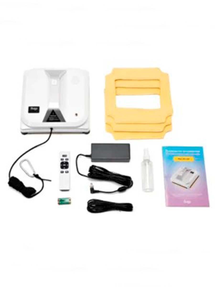 | Комплектация | 1 адаптер; 1 страховочный трос; пульт ДУ — 1 шт; Робот мойщик окон — 1 шт; Салфетки 6 шт |