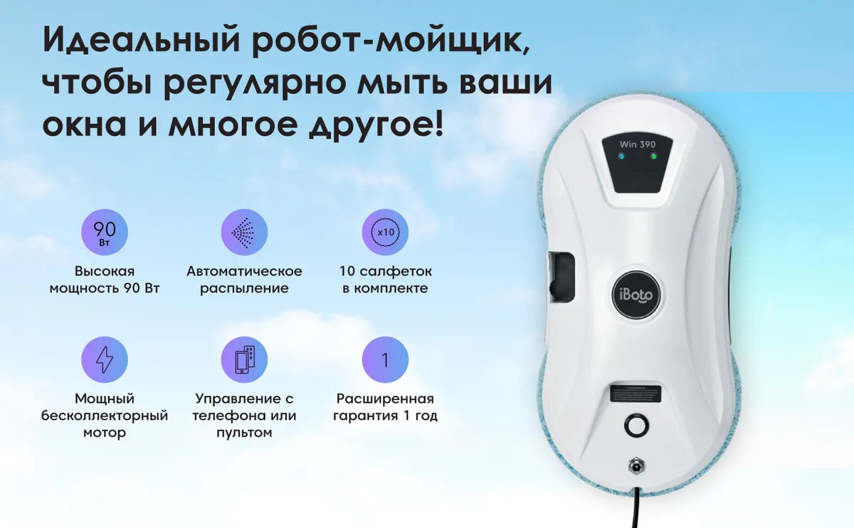 Экономьте время и деньги на мытье окон с роботом мойщиком окон iBoto Win 390!