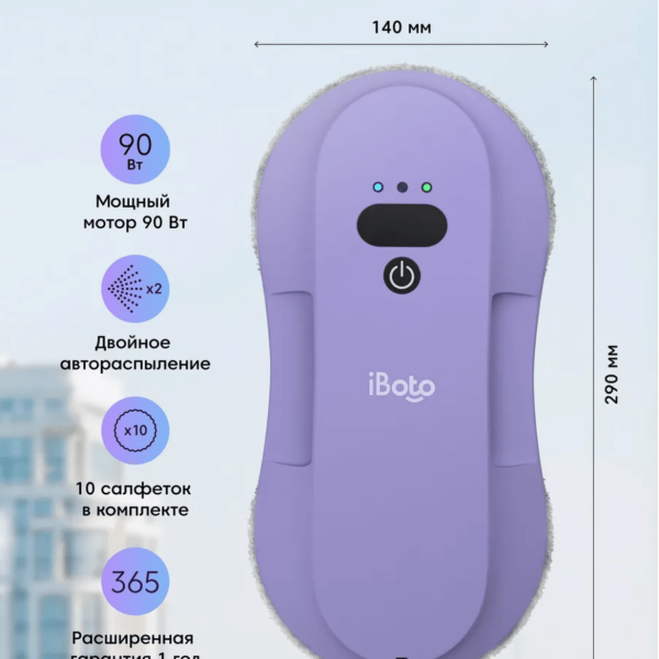 Робот мойщик окон с распылением с двух сторон iBoto Win 395 от специализированного на робототехнике бренда iBoto – это идеальный робот мойщик, чтобы экономить вам время и деньги на мытье окон, безопасно мыть любую вертикальную и горизонтальную поверхность в квартире или доме: окна, зеркала и многое другое, не оставляя разводов, не царапая и не повреждая поверхность! Робот мойщик будет прекрасным помощником в решении проблемы безопасного мытья окон от 30 см на высоких этажах!
