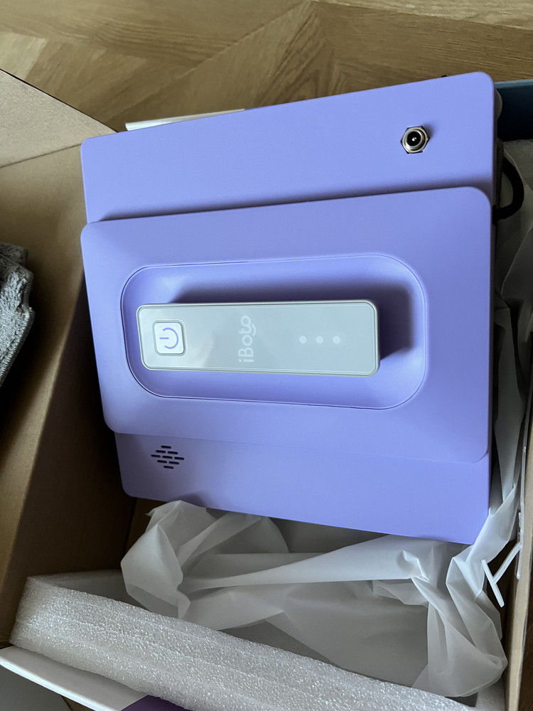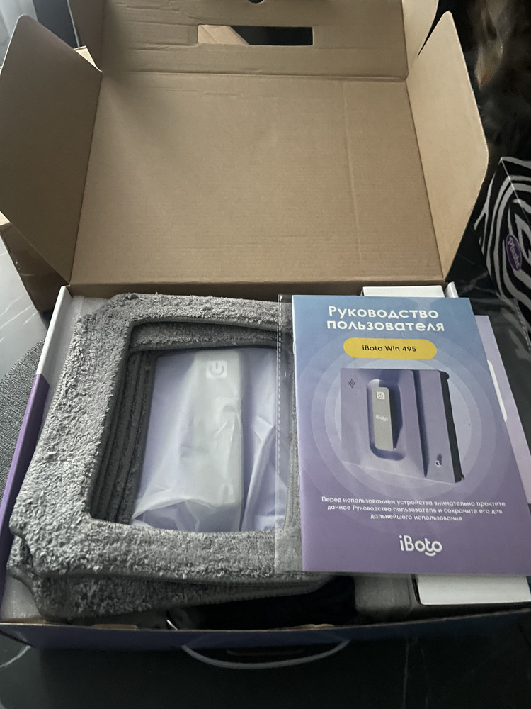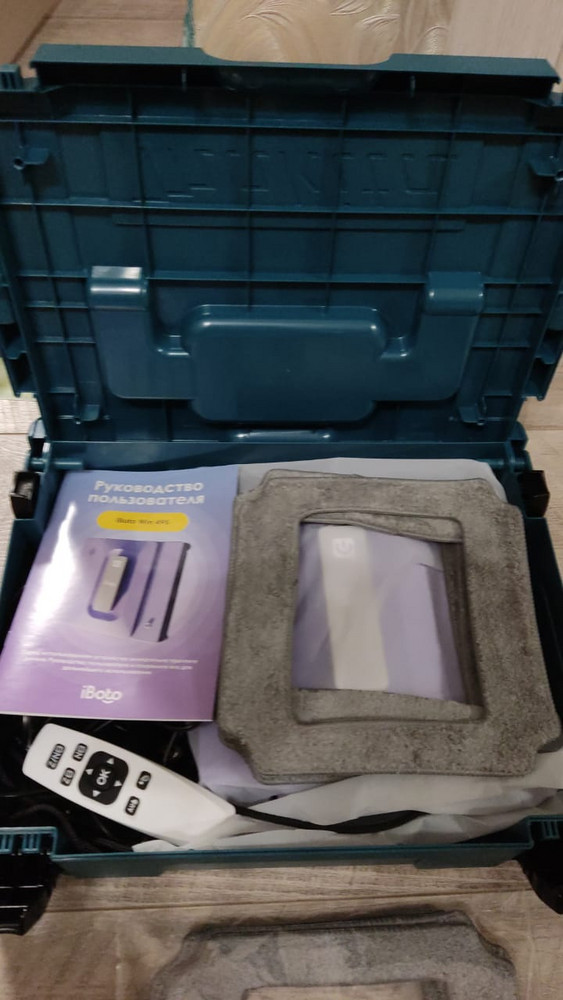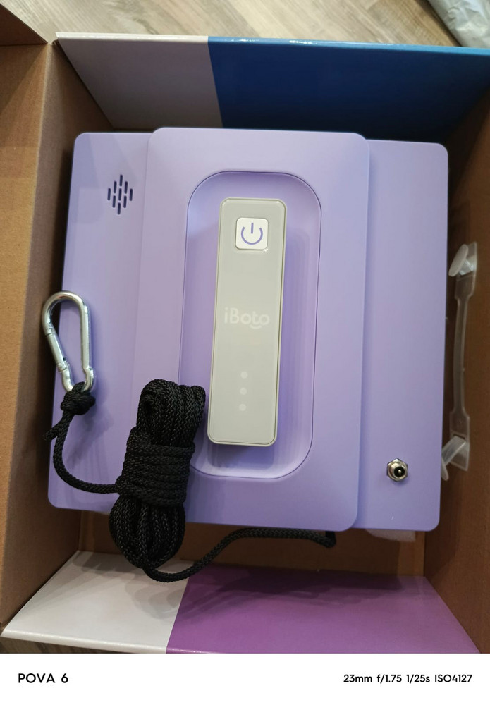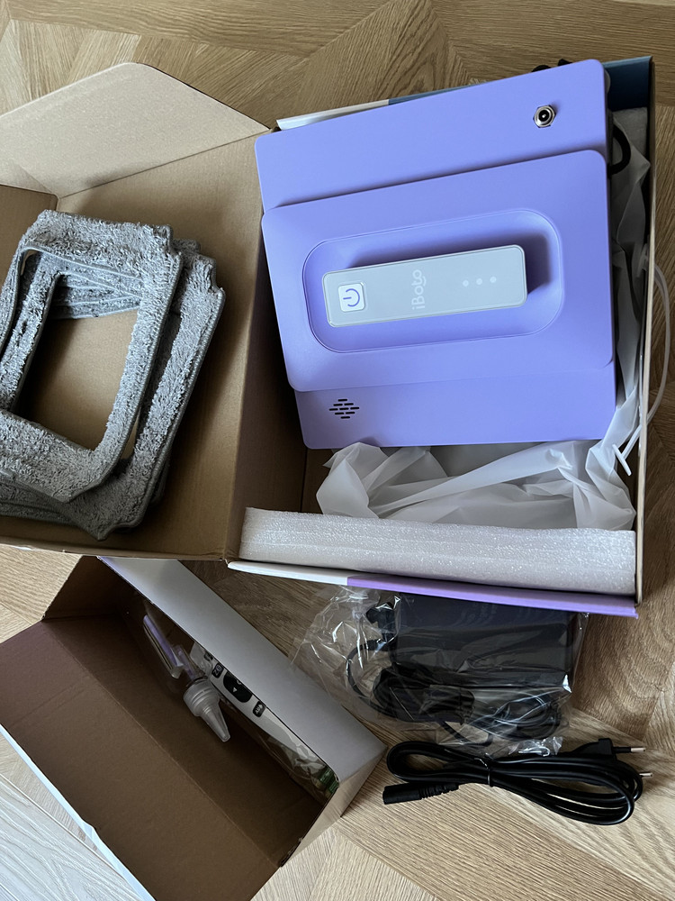 Упаковка целая, но почемуто не запечатаны не коробка не пакеты с роботом и шнурами. Размер аппарата в самый раз. Мощности достаточно. Длины провода хватит и на высокие окна.