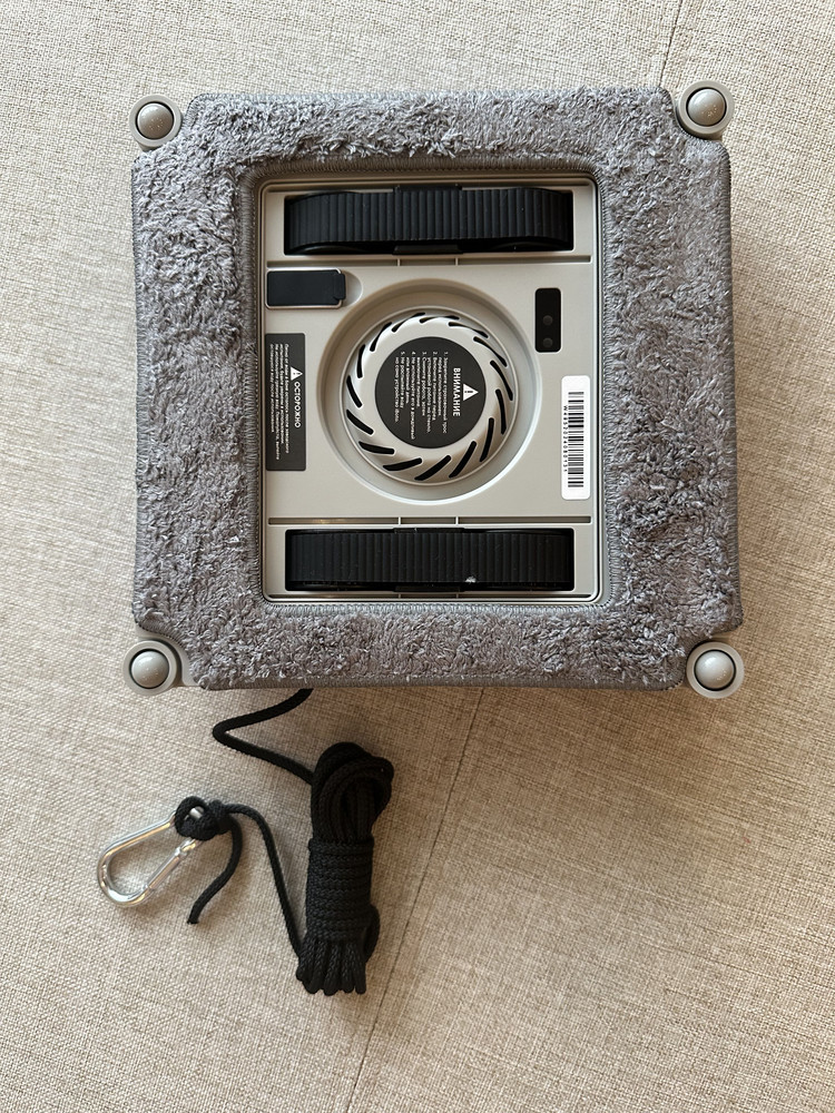 Благодаря мощному вакууму, мойщик окон робот iBoto Win 495 надежно прикрепляется к любой поверхности, закрепляется страховочным тросом (общая длина с кабелем, адаптером и тросом – 7.5 м), а также имеет встроенный аккумулятор резервного питания на 20 минут на случай перебоя с электричеством